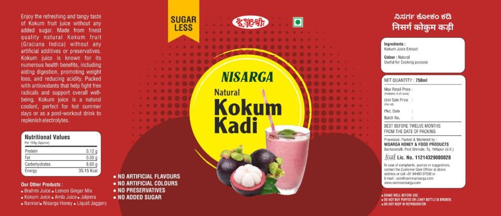 Enjoy the refreshing and tangy taste of Kokum fruit juice without any added sugar. Made from finest natural quality of Kokum Fruit (Graciana Indica) without any artificial additives or preservatives. Kokum Juice is known for numerous health benefits, including aiding digestions, promoting Wight loss and reducing acidity. Packed with antioxidants that helps fight free radical’s and support overall wellbeing. Kokum juice is a natural coolant, perfect for hot summer days or as a post-workout drink to replenish electrolytes.